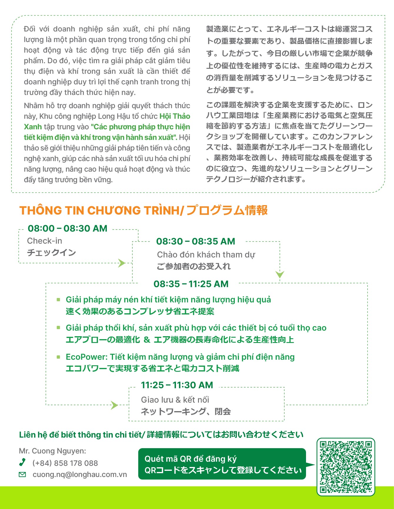 [ロンハウ工業団地主催セミナーのご案内 10月24日開催]グリーンセミナー:生産工程における節電と空気圧縮の効率化のソリューション